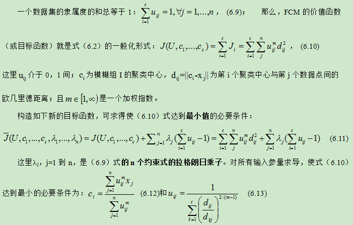 用式(6.12)计算c个聚类中心ci,i=1,…,c。