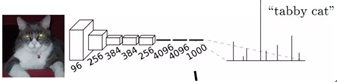 以AlexNet为代表的经典CNN结构适合于图像级的分类和回归任务,因为它们最后都期望得到整个输入图像的一个数值描述, 比如AlexNet的ImageNet模型输出一个1000维的向量表示输入图像属于每一类的概率。例如,下图中的猫, 输入AlexNet, 得到一个长为1000的输出向量, 表示输入图像属于每一类的概率, 其中在“tabby cat”这一类上响应最高。