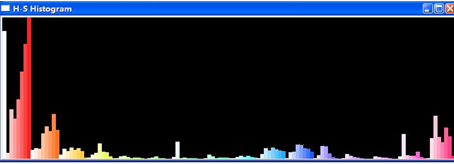 注意:改图HSV直方图,只画了H和S,因为V是明度;显示的直方图无一明确的标准,编程时记好数即可。HSV直方图,则统计好H、S、V的各个值所占的比例,为三个独立的直方图。
