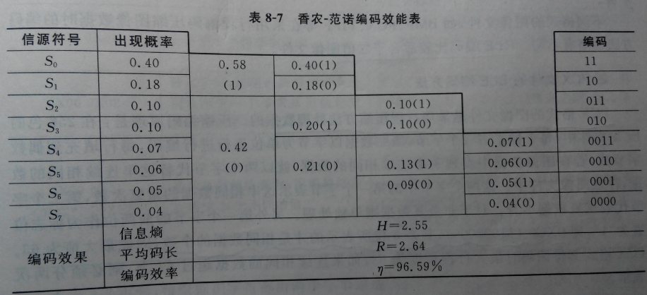将二进制累加概率的前位的数字,并省去小数点钱的“0.”字符,即为对应信源符号的香农-范诺编码。